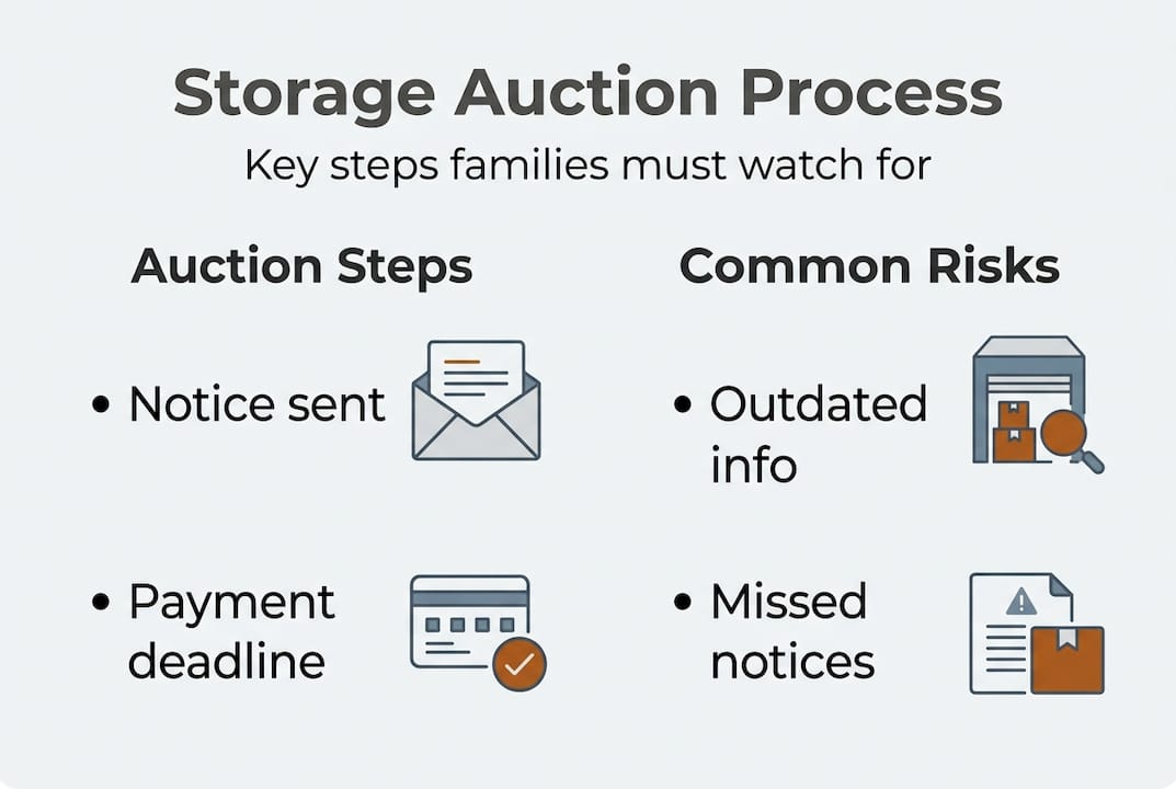| Notice is critical | Multiple legal notices are required before a storage auction, but communication failures often occur. |